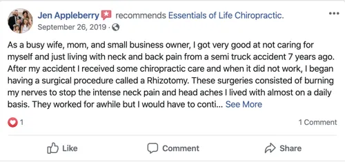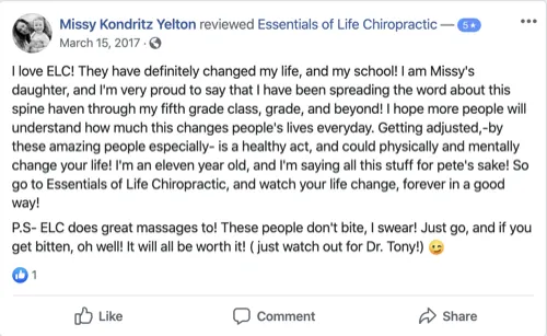 This week we are running a new patient special on Facebook. By submitting your information and calling to immediately schedule an appointment, you’ll receive a consultation, exam and report of findings for the special price of $47 ($135 Value!)